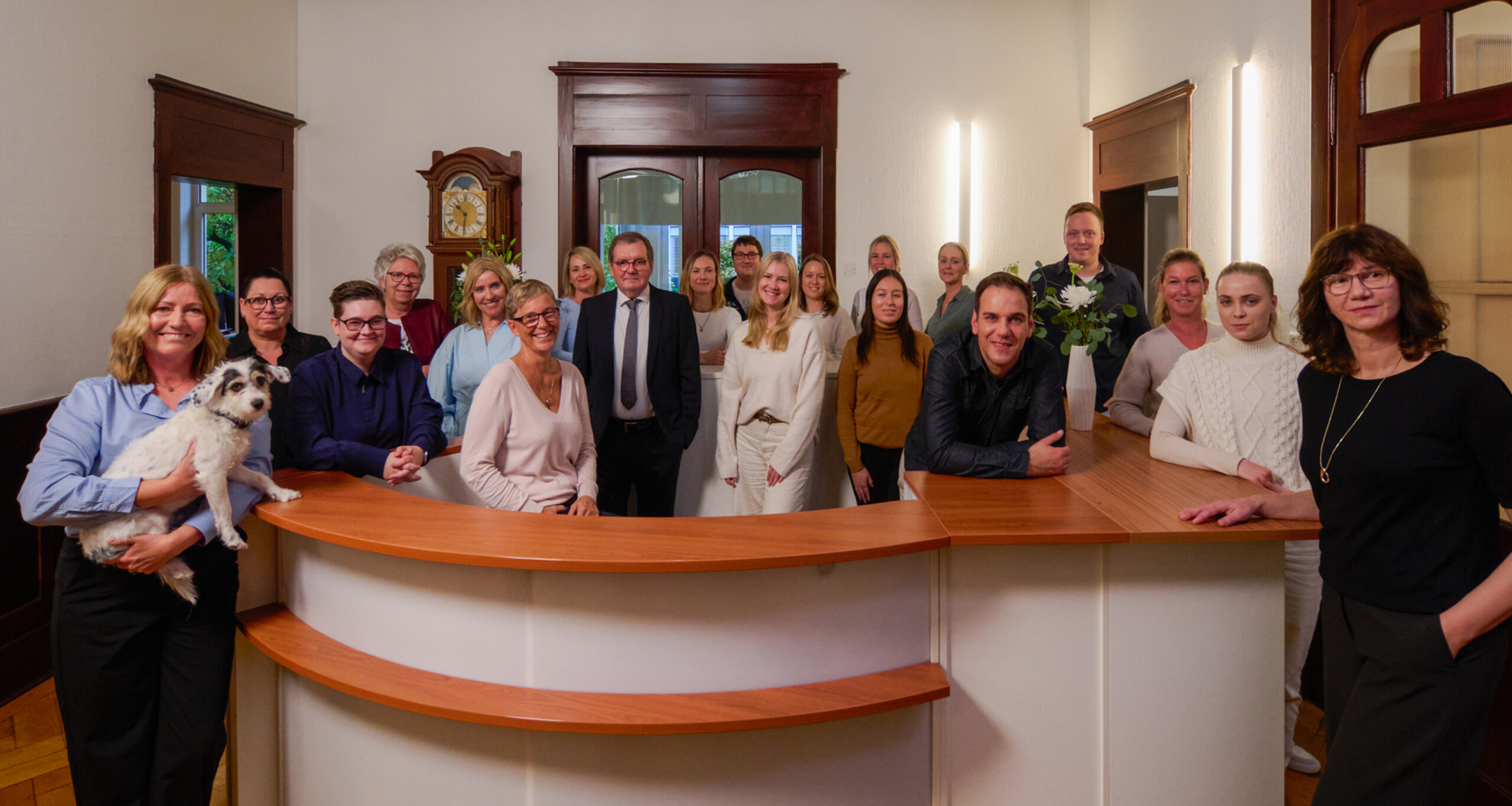 Unterstützt werden wir von einem 18-köpfigen Team, das nicht nur bestens eingespielt ist, sondern zum großen Teil seit vielen Jahren bei uns tätig ist. Das heißt für Sie: Die Prozesse sind eingespielt, Abläufe funktionieren reibungslos, man kennt und schätzt sich untereinander. Die Arbeitsatmosphäre ist entspannt, die Fluktuation gering – und die Qualität unserer Beratung entsprechend hoch.